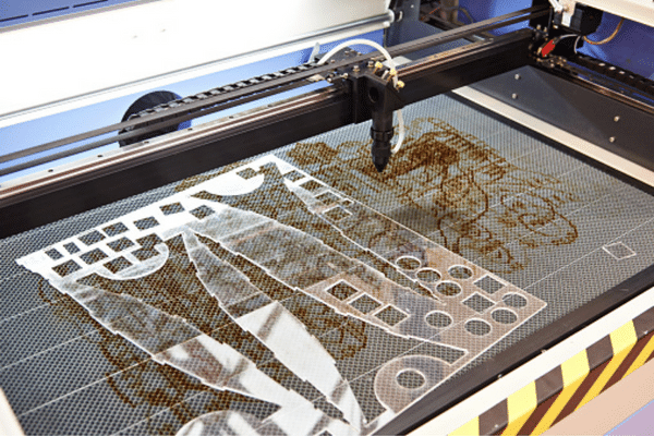 Laser cutter works by directing a very small-diameter, high-energy light beam down onto a material to cut it into a 2-dimensional profile.